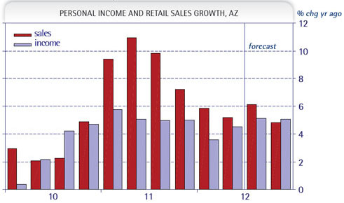 The U.S. (and Arizona) economies are locked into a slow recovery that is expected to continue into next year before faster growth materializes. On the bright side, evidence continues to build that housing is beginning to heal. The biggest challenge for analysts is to get a handle on absorption of the large supply of vacant homes. Over a 30-year horizon we continue to expect Arizona to become one of the ten most populous states with over 10 million people.