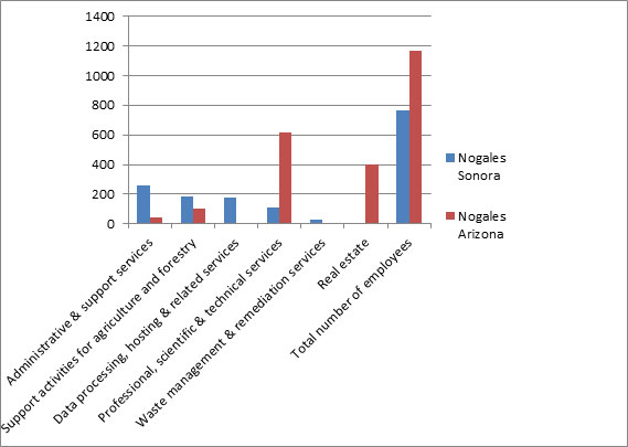 In terms of services, Nogales, Arizona shows comparative advantages in the Ambos Nogales region, especially in the area of professional services ( Figure 2 ).