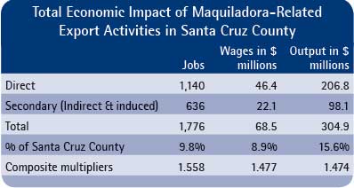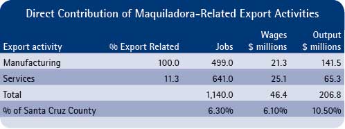 Economic impact of maquiladora-related manufacturing and service industries in Santa Cruz County