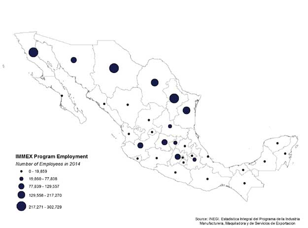 Source: INEGI. Estadística Integral del Programa de la Industria Manufacturera, Maquiladora y de Servicios de Exportación (IMMEX), Feb. 2015. Data are averages January-November 2014. www.inegi.org.mx